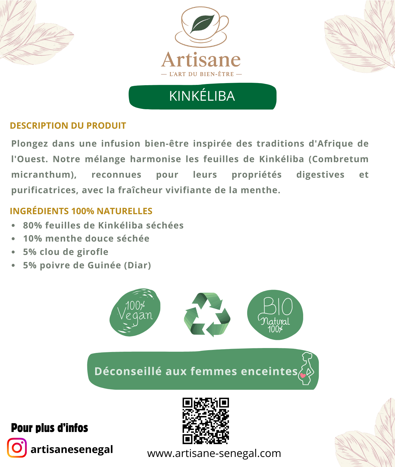 Nous voulons que vous soyez entièrement satisfait de votre achat chez Artisane. Si vous n'êtes pas satisfait de votre commande pour quelque raison que ce soit, nous vous offrons une politique de retour sans tracas.